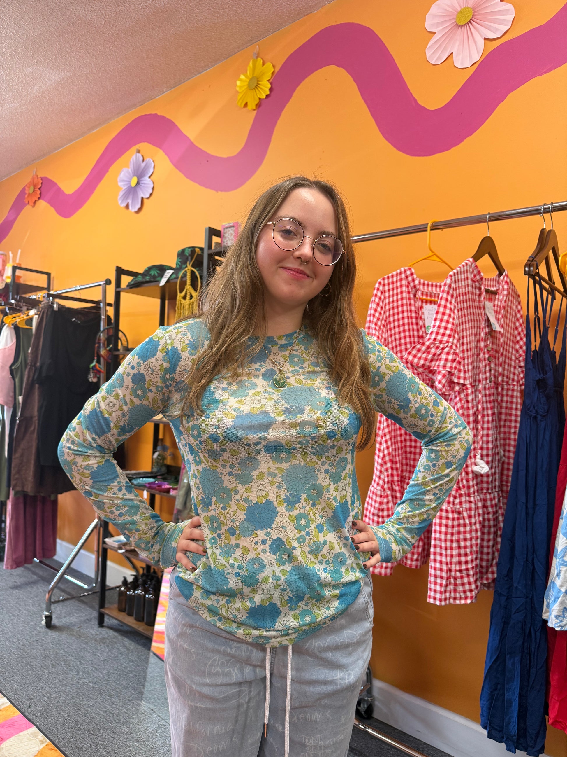 Blue flower mesh top
